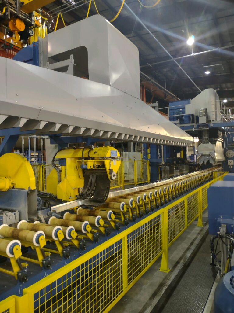 The 6” press in Fonda, NY underwent a $ 1 million handling system upgrade that included a log infeed table, 5 zone furnace, log shear, & horizontal loader assembly.